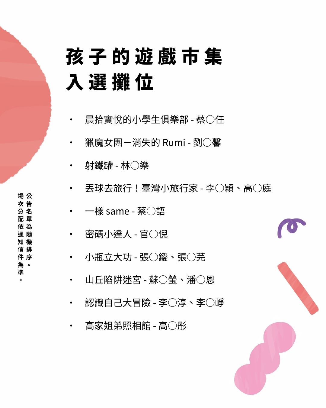 承辦單位milk kids 牛奶小孩將於接續 2 個工作日內,陸續寄出通知信至您的信箱,