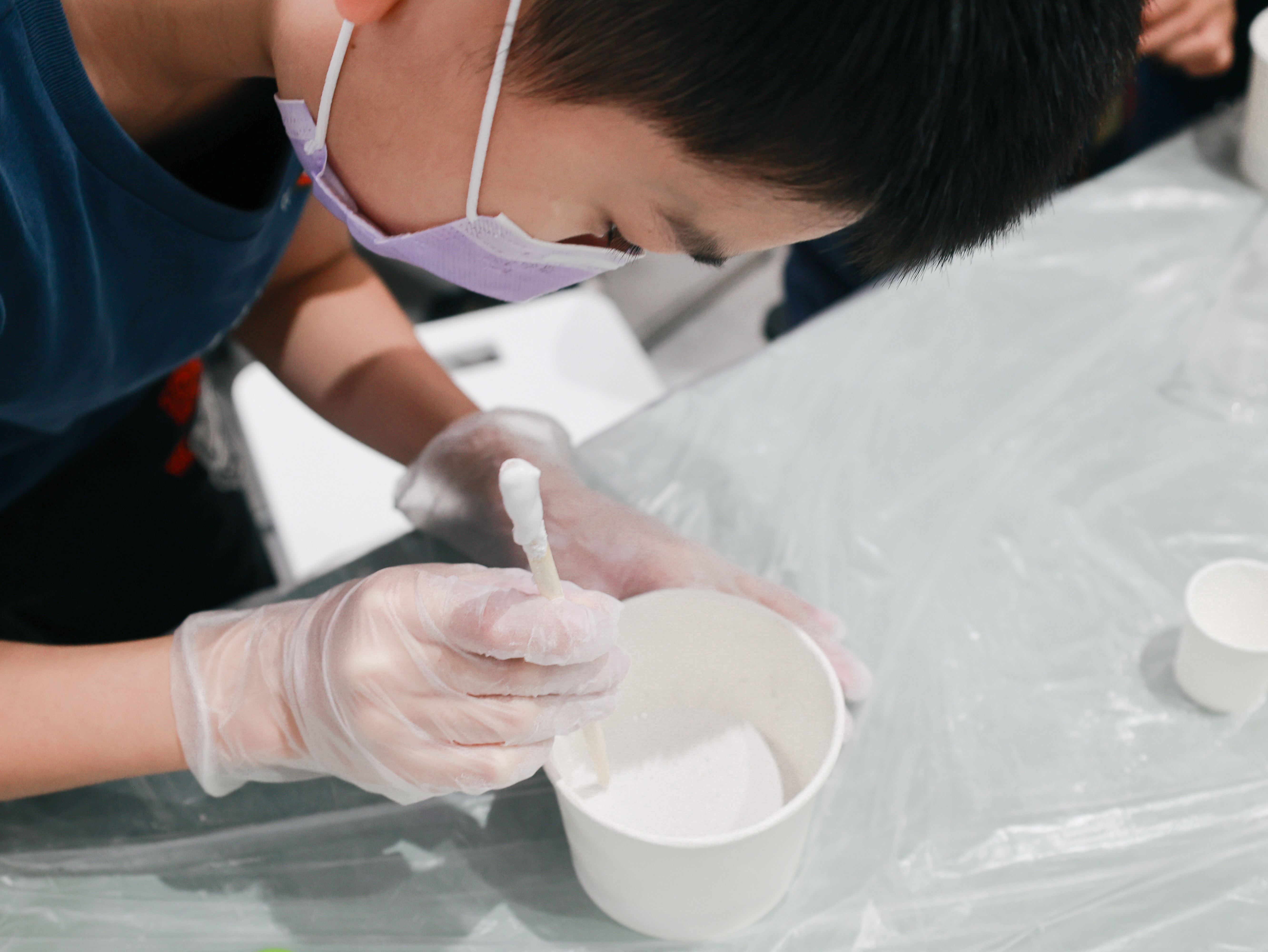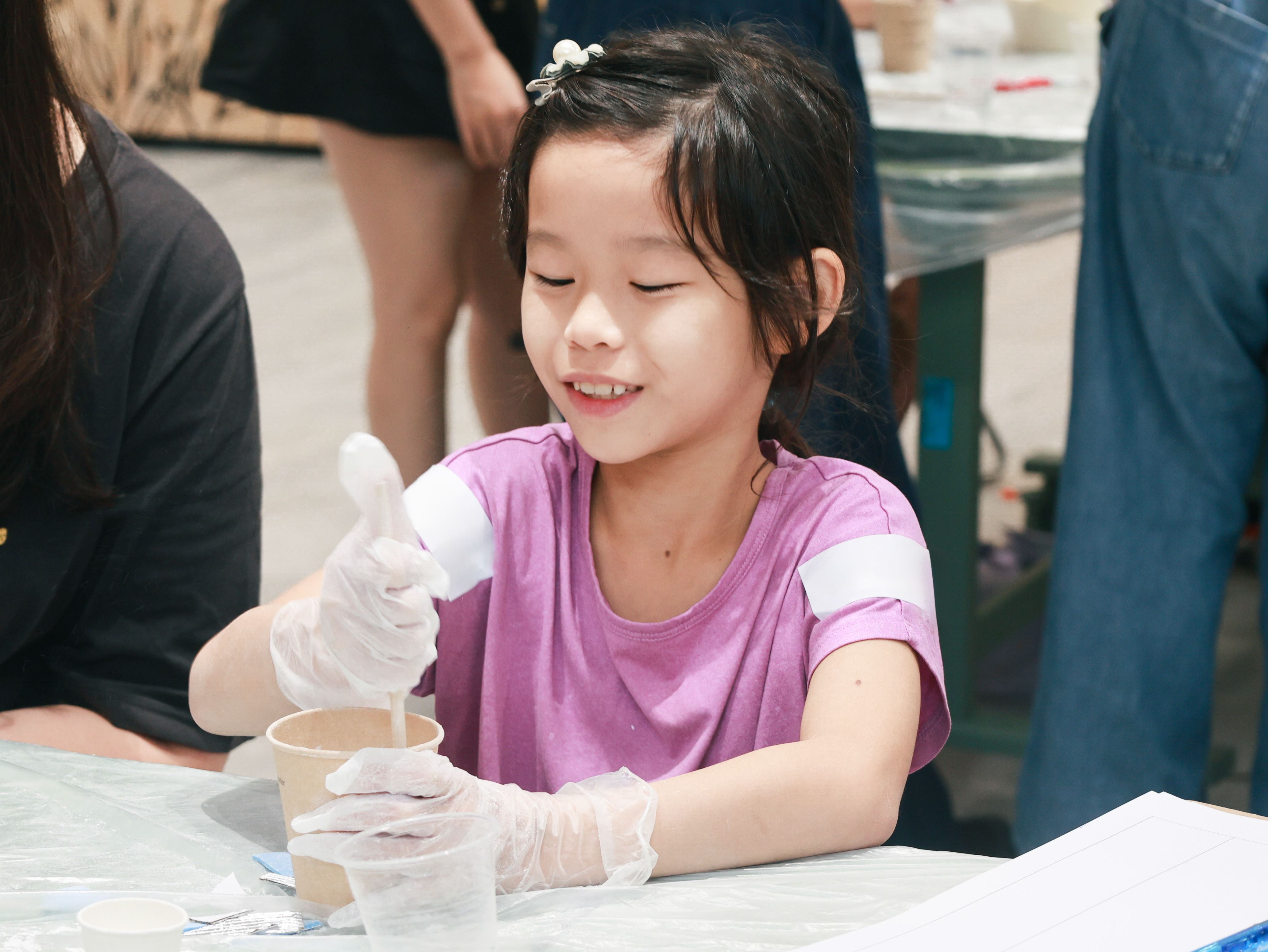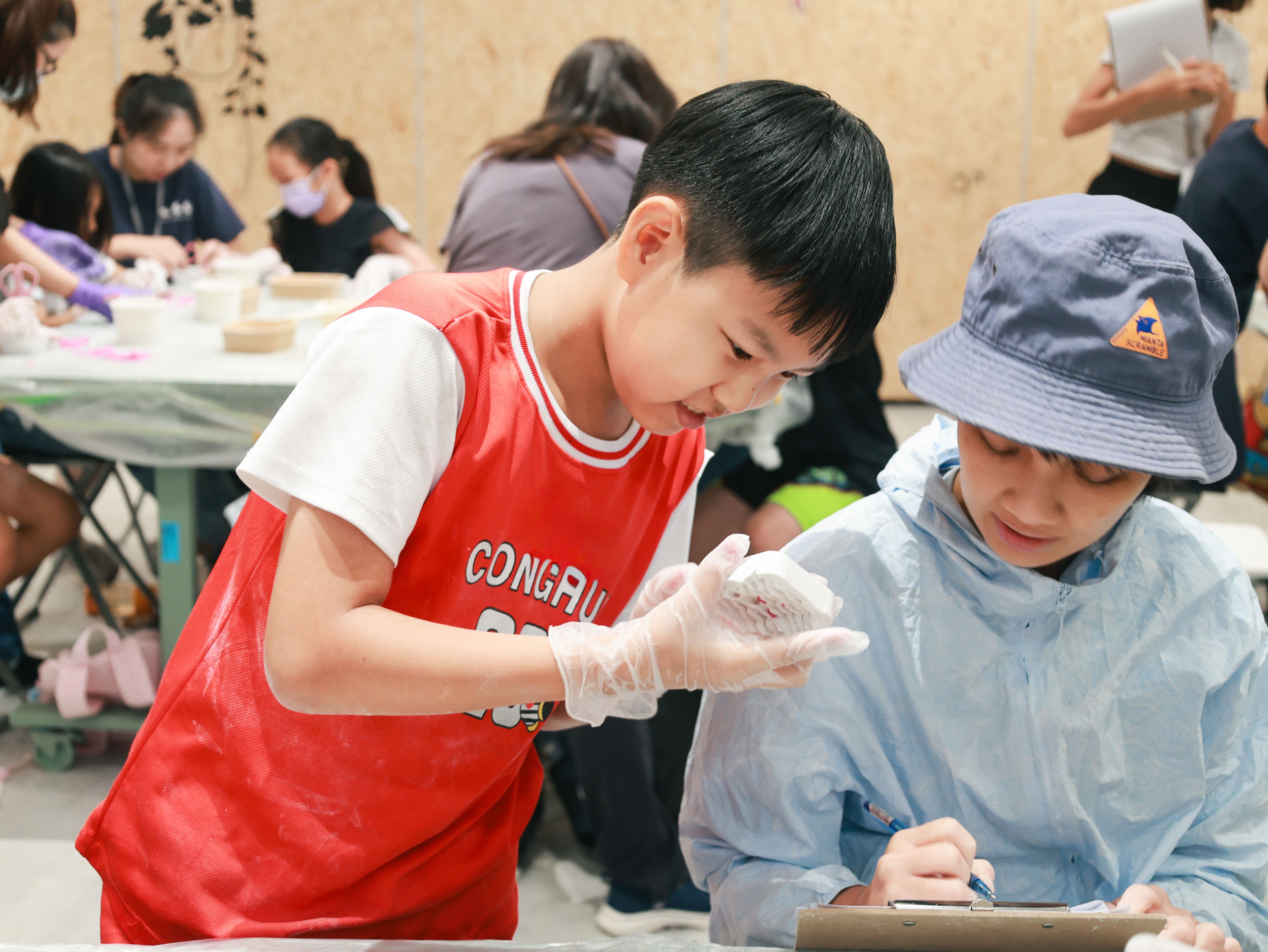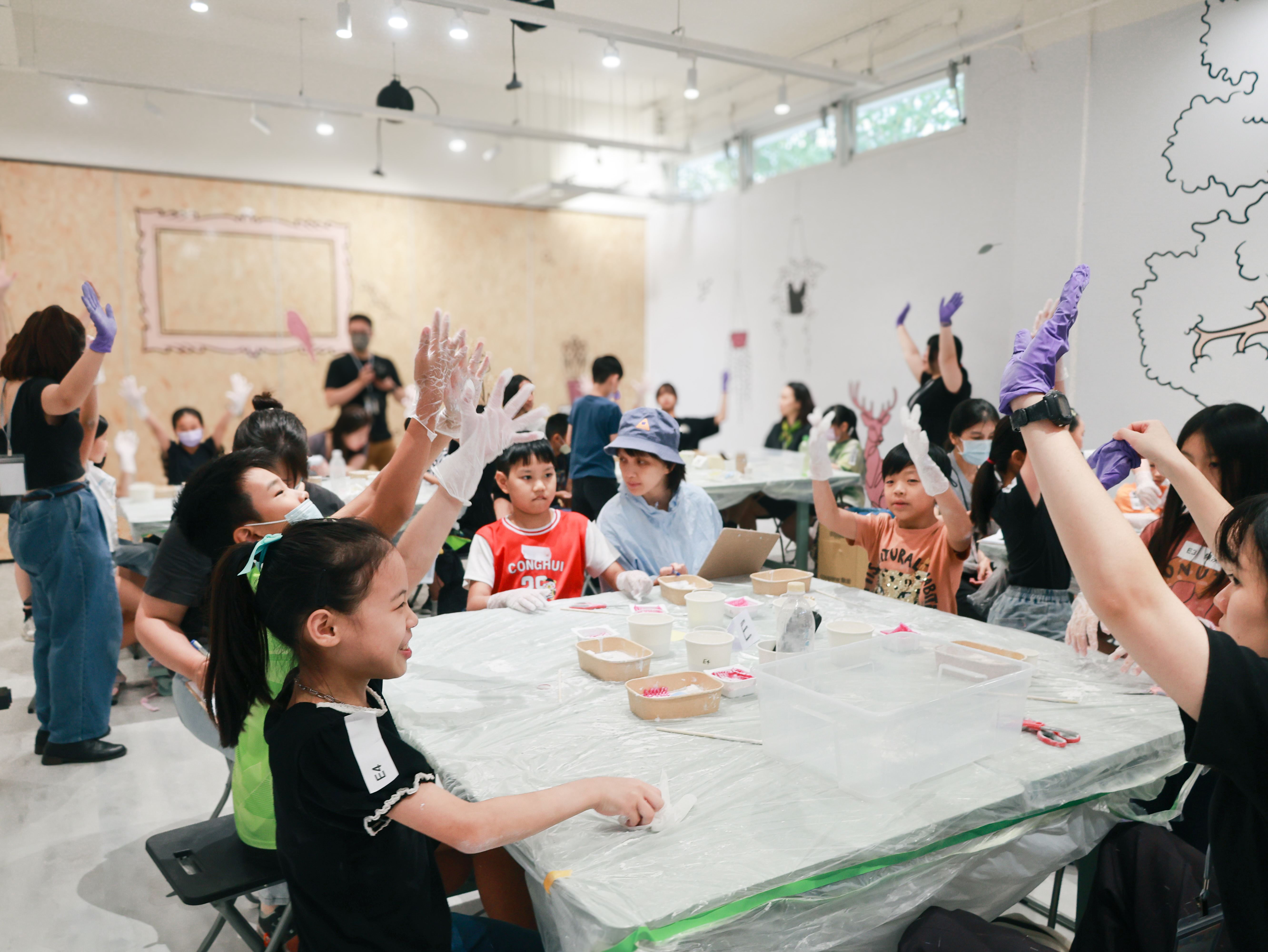 當孩子進入 8–12 歲階段,他們已經具備更成熟的邏輯思維與組織能力,也更能理解事物之間的關聯。於是,在暑假的五場工作坊中,我們讓他們從「小小藝術家」的角色,逐步走向「小小策展人」,體驗展覽背後的知識整理、轉譯,以及實際製作的過程。
